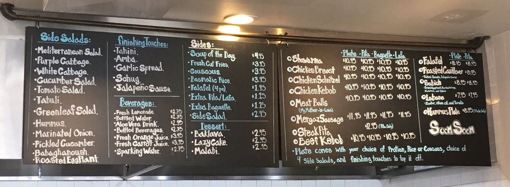 Soom Soom Fresh Mediterranean in Los Angeles offers a diverse menu with options for both meat-eaters and vegetarians. The enticing entrée choices include Beef Shawarma, Chicken Kebob, and Fried Chicken Schnitzel, all priced at $13. Vegetarian dishes like Falafel and Sautéed Mushroom provide flavorful alternatives at $14. House Hummus Plates, such as the Shawarma version for $14, showcase originality. Customers rave about the freshness and generous portions, with one reviewer praising the Chicken Shawarma plate with various sides and pita bread. The convenient location in West Hollywood, alongside quick service and fresh ingredients, make Soom Soom a go-to spot for Mediterranean cuisine. Don't miss out on this gem for a satisfying and flavorful dining experience.